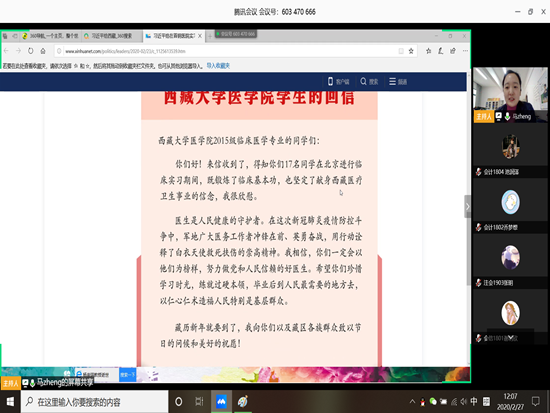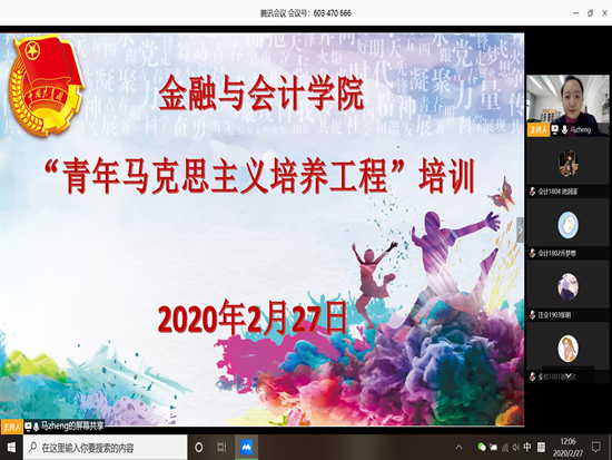 2月27日中午,我院开展“青年马克思主义者培养工程”线上培训活动。院级“青马工程”学员参加,培训由分团委书记马峥主持。