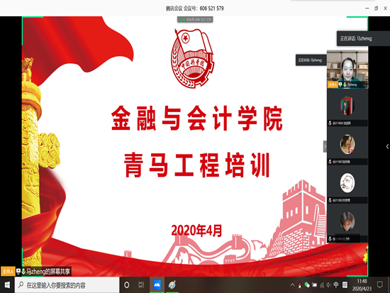 为了增强学生的国家安全意识,金融与会计学院于2020年4月23日中午开展“青年马克思主义者培养工程”--国家安全教育日主题线上培训活动。活动由院分团委书记马峥主持,院级“青马工程”学员参加培训。