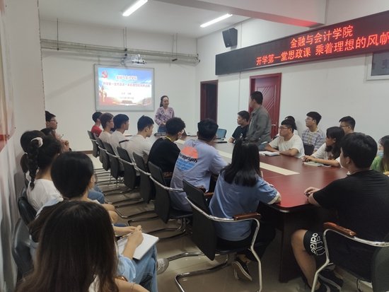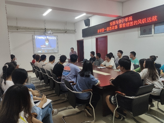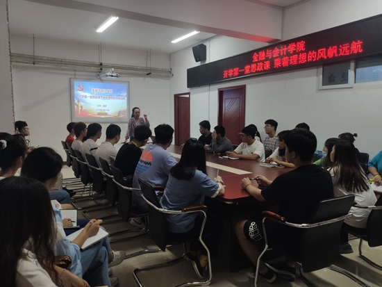 9月15日晚,金融与会计学院在SY5412会议室开展“开学第一堂思政课 乘着理想的风帆远航”思想教育活动,院学生会主要干部和班干部代表出席,活动由分团委书记马峥主持。