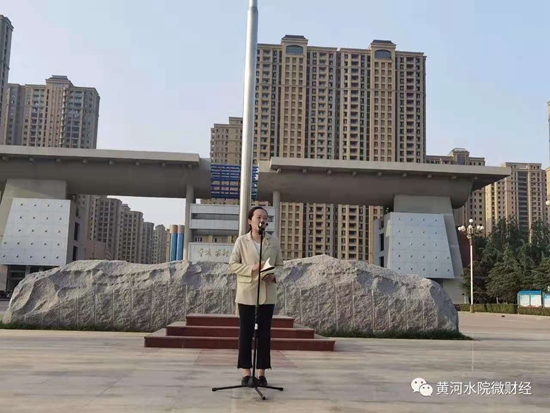 迎着五月的晨曦,五星红旗伴随着雄壮的国歌声冉冉升起,全体师生行注目礼。学生党员、会计(注册会计师方向)1802班尤锦枫围绕“弘扬五四精神,砥砺奋进前行”为主题进行发言,她向全体同学发出号召,要继承和发扬共青团的优良传统,坚定共产主义信仰,牢记当代大学生的社会责任与历史使命,为中华民族的伟大复兴贡献青春力量。