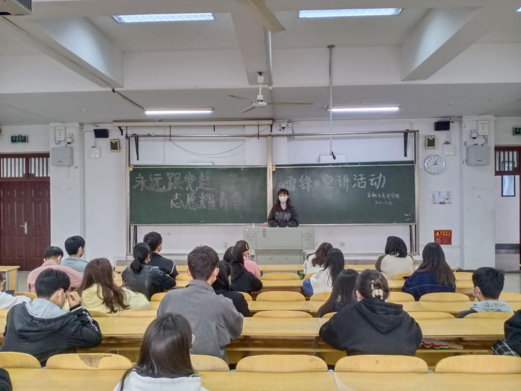 3月15日下午,金融与会计学院分团委在JX2102教室开展学习雷锋精神宣讲活动。分团委组织部学生干部李子逸为学生做《学雷锋,我先行》主题演讲,讲述雷锋同志的先进事迹,号召全体同学从自身做起,从身边的小事做起,勤奋学习,积极进取,积极参与志愿服务,以实际行动践行社会主义核心价值观,争做新时代雷锋精神的接班人。
