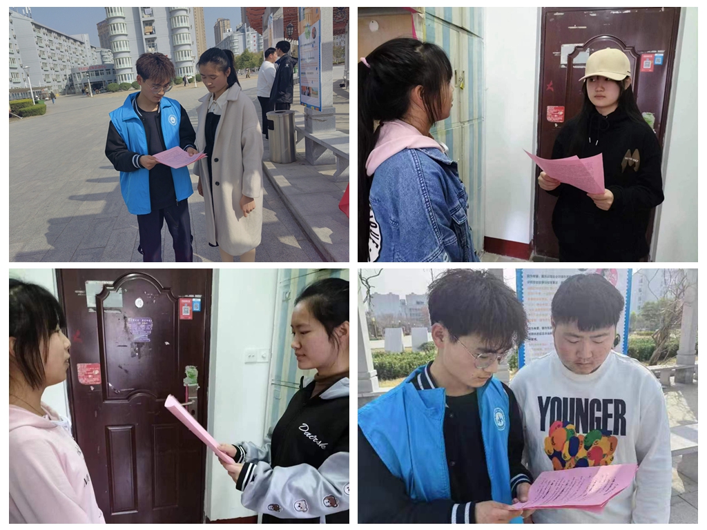 志愿者们在扬帆广场集合,由院社联分会组织开展志愿服务培训,发放宣传页。志愿者们分散开来,在扬帆广场、宿舍楼内外为同学们普及金融知识、银行知识、税法知识,宣传了国家金融、税收法律政策,提升大学生的依法纳税的意识和社会责任意识;向同学们宣传保护个人信息和财产安全的方法,预防金融诈骗、非法集资、传销、网络平台误充值等金融事故,帮助同学们树立正确的价值观,提高金融风险防范意识。