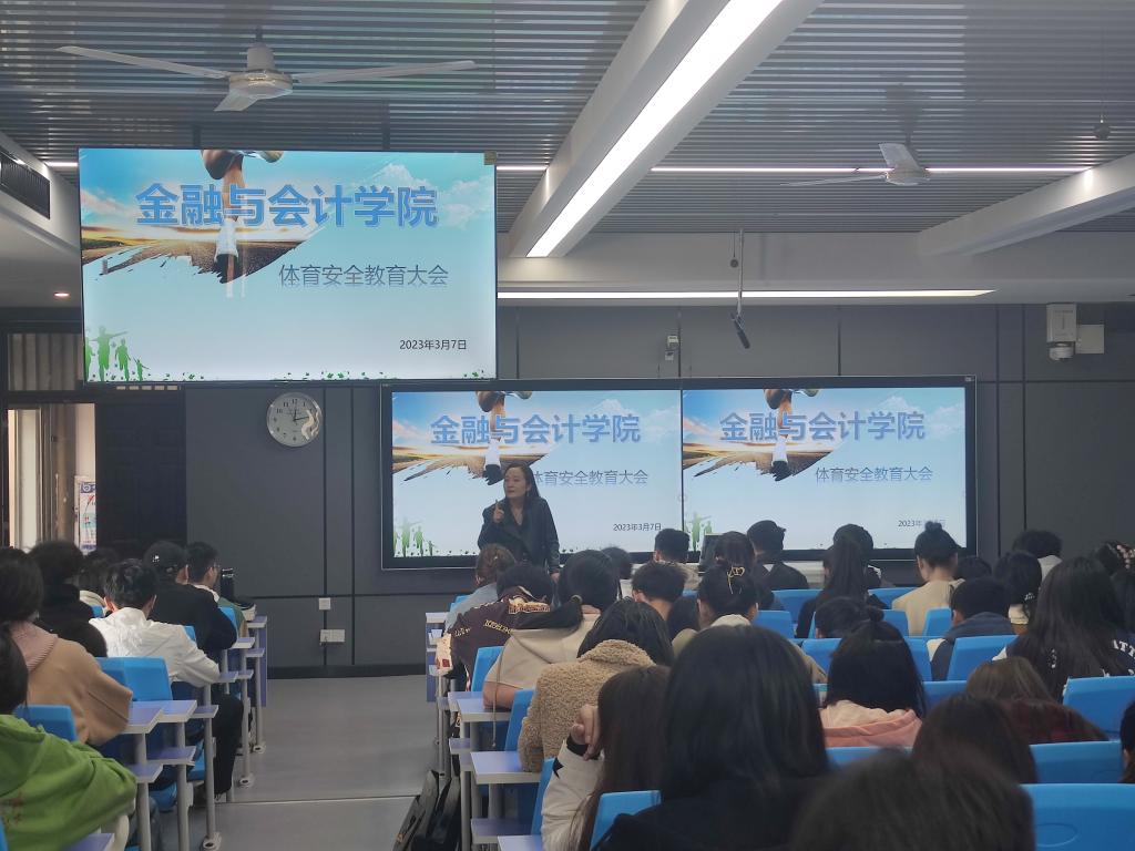 3月7日中午,金融与会计学院在JX2203教室,组织召开学生健康与体育安全教育大会,学生会干部、各班班干部、各宿舍宿舍长、各球队队员参加会议,会议由分团委书记马峥主持。