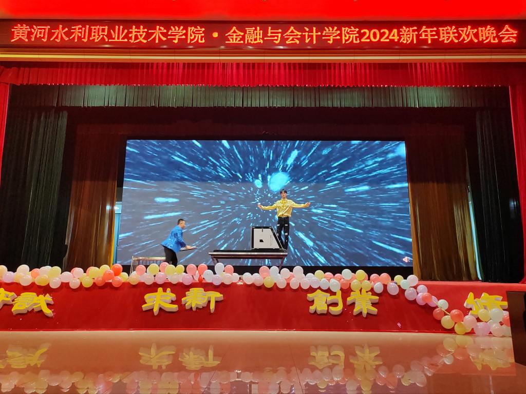 随着活力四射的开场舞《宠爱》,晚会拉开了序幕,舞蹈《oh》《可爱摆》《屋顶着火》《风情万种》《chikchikbangbang》等节目,刚柔并济、动感十足,展现出当代大学生的青春活力。古典舞《入画江南》,曼妙灵动的舞姿伴随着悠扬唯美的音乐,展现了中华传统文化的厚重与底蕴学生创作的小品《大学生的精神状态》、话剧《灰姑娘》《遇见》等节目彰显了同学们的创意与巧思。杨阳老师带来的《魔术表演》、辅导员团队带来的诗朗诵《老师与你》及舞蹈为同学们带来了一场视听盛宴,引得同学们鼓掌喝彩,将整场晚会推上了高潮。《修炼爱情》《桃花笑》等歌曲旋律婉转,同学们纷纷打开手电筒伴随节奏一起哼唱,现场氛围欢快热烈。最后,晚会在全体演职人员带来的大合唱《难忘今宵》中落下帷幕。