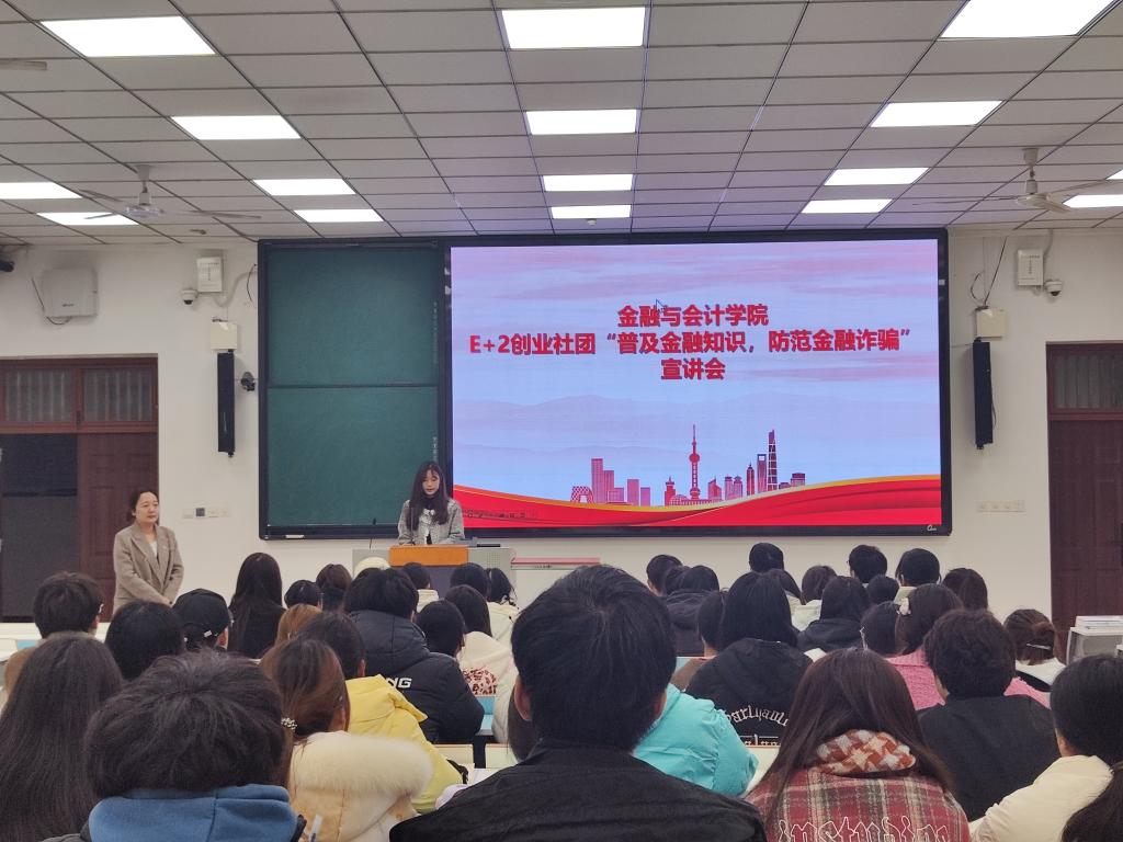 11月15日中午,金融与会计学院在JX6101教室举办“普及金融知识,防范金融诈骗”宣讲会,院分团委书记、“E+2”创业协会指导教师马峥、各班学生代表参加活动,活动由金融与会计学院“E+2”创业协会承办。