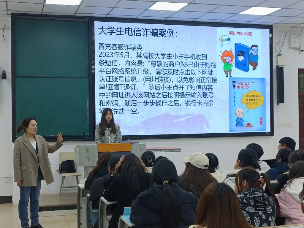 “E+2”创业协会负责人李雪莉同学向大家讲解了如何保护个人信息、银行卡诈骗案例、电信诈骗案例,通过真实案例,向大家普及识别和防范金融诈骗的知识。马峥指出,我院近年来持续开展“普及金融知识 增强社会责任意识”系列活动,为社区居民、在校师生、农村留守人群普及金融知识,开展防范金融诈骗系列志愿服务活动,一方面营造了良好的社会金融环境,另一方面引导师生用专业知识回报社会,弘扬志愿服务精神,履行社会责任,践行了社会主义核心价值观。希望全院学生积极参加此项活动,推进我院志愿服务品牌化建设,丰富精神文明创建活动内涵,提升精神文明建设水平。