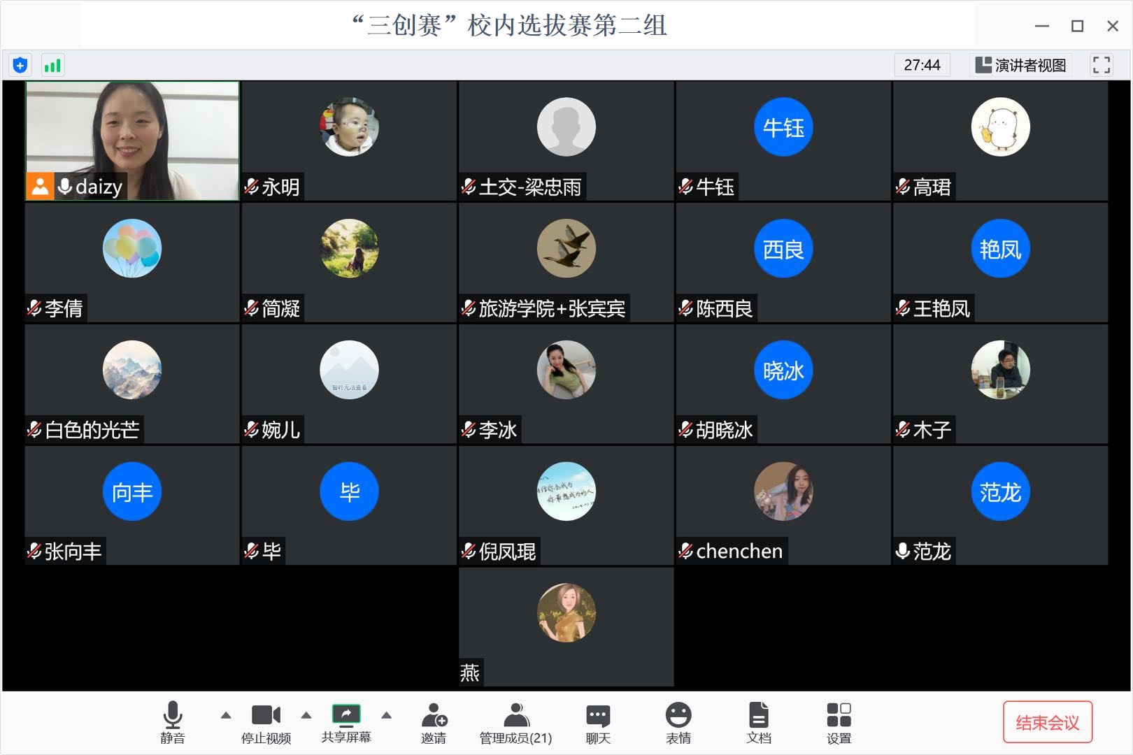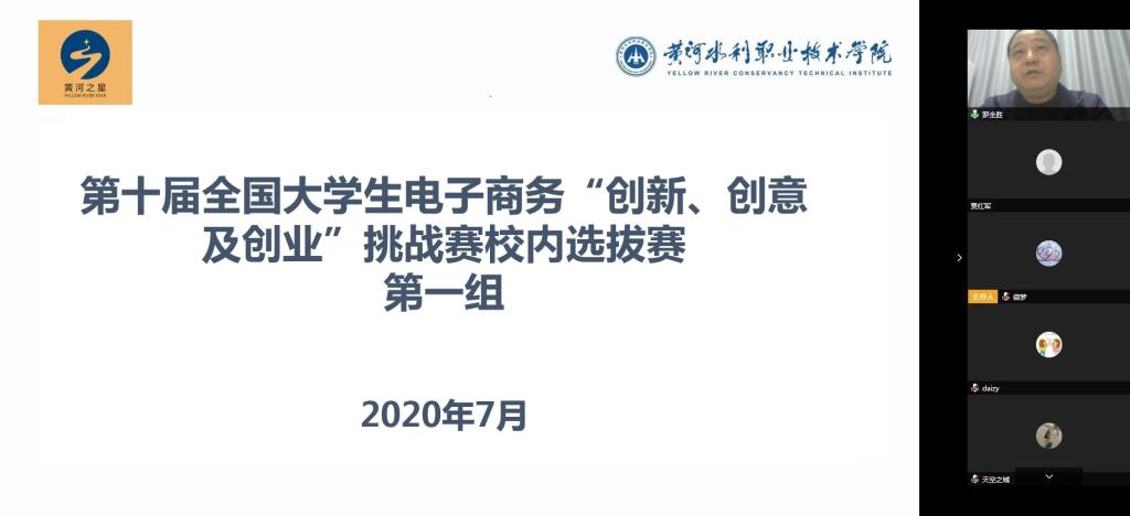 此次大赛自4月份启动以来,共有来自各院系的200多个项目团队参加网上报名。经过院系初选、校级复审等环节,遴选出26个项目参加现场评审。各参赛团队根据自身项目特点制作PPT进行网上项目路演,并从项目背景、创新性、商业性、风险因素及经济效益等方面进行了阐述。评审专家对各项目的整体情况及相关细节方面进行了点评,并提出了有针对性的改进意见和建议。创新创业学院将推荐在本次校内选拔赛中表现优秀的项目参加2020年全国大学生电子商务“创新、创意及创业”挑战赛河南省赛。