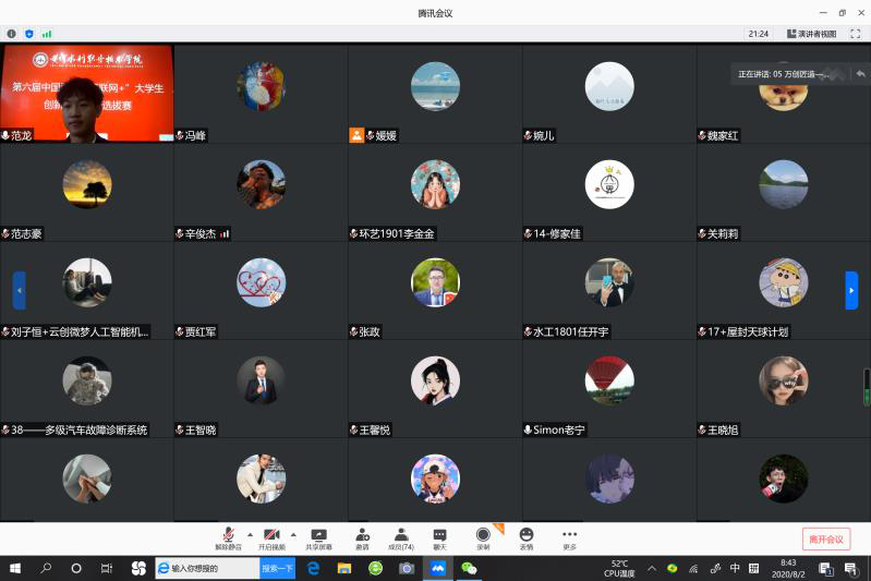 8月2日,我校通过腾讯会议线上举办了第六届中国国际“互联网+”大学生创新创业大赛校内选拔赛,各参赛项目团队成员、项目指导教师共100余人参加了活动。