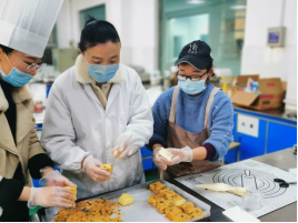活动以介绍家庭中简单易上手的西点为主,为广大师生培训了蛋挞、肉松小贝、蛋黄酥等经典西点的制作流程。大家齐动手,真切体会到了制作西点的乐趣。品尝着自己制作的产品,大家脸上都洋溢着满足的笑容。