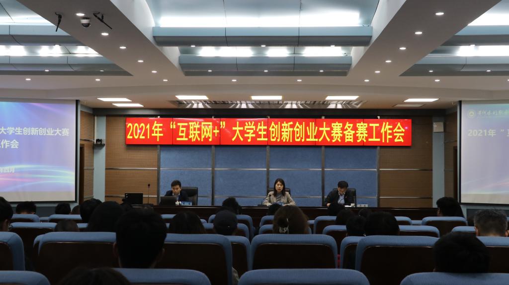 2021年4月28日下午,我校在3号实训楼三楼报告厅召开2021年“互联网+”大学生创新创业大赛备赛工作会议。副校长焦爱萍出席会议并讲话,各二级学院主管双创工作领导、入围校赛项目团队成员及项目指导教师等200余人参加了会议。会议由创新创业学院副院长范龙主持。