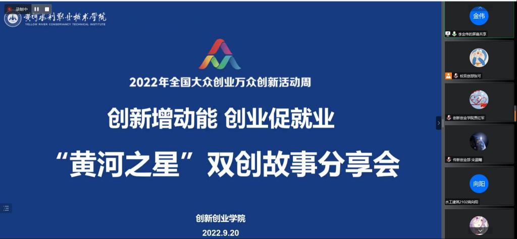 为进一步推进创新创业教育实践活动开展,营造校园创新创业文化良好氛围,9月20日,我校通过腾讯会议成功举办“黄河之星”双创故事分享会。活动邀请了我校第七届中国国际“互联网+”大赛金奖获得者、校创新创业部部长李金伟作“我的双创故事分享会”。创新创业学院老师、创新创业部全体学生和部分创客空间师生代表参加。