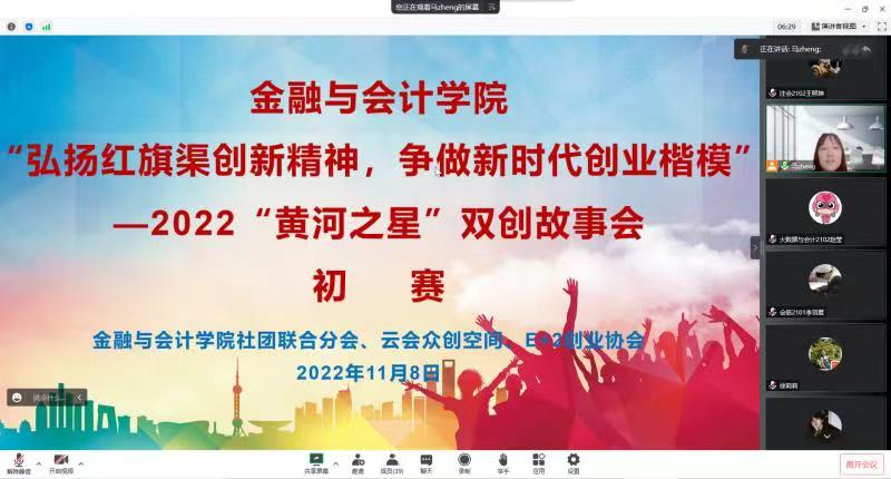为学习宣传贯彻党的二十大精神,学习习近平总书记视察河南安阳林州红旗旗重要讲话精神,培养学生的创新创业意识,11月8日下午,金融与会计学院举行“弘扬红旗渠创新精神,争做新时代创业楷模”—2022“黄河之星”双创故事会初赛选拔。本次比赛由金融与会计学院社联分会、云会众创空间、E+2创业协会联合举办。