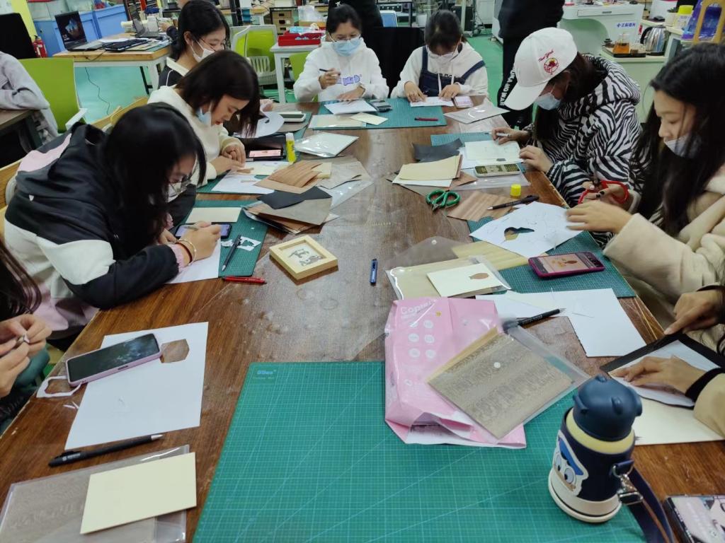 活动以“传承传统艺术,体验木皮刻画”为主题,空间负责人介绍了不同的木皮,樱桃木、黄花梨木、黑檀木等等;紧接着同学们挑好图案,拿起美工刀,纷纷着手开始雕刻自己的作品,现场,同学们兴致勃勃,激发出了浓厚的学习兴趣。经过半个小时后,一幅幅生动活泼的木皮画就生成了。