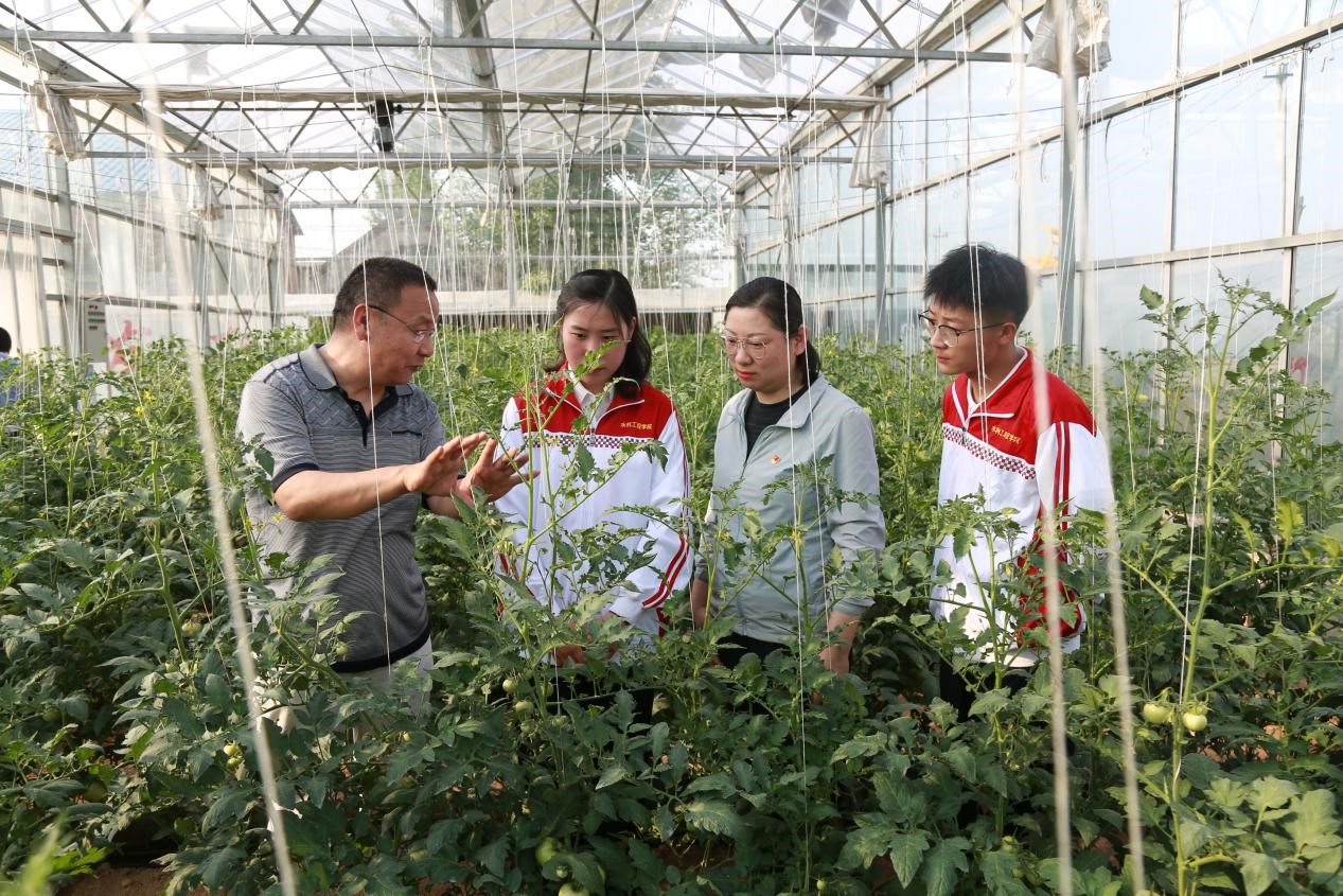 试验站高站长在自动化玻璃温室内向学生们介绍了全程精量水肥一体化技术对番茄生长、水肥施用状况的影响。然后,薛教授进一步介绍了全程精量水肥一体化技术的背景、国内外相关技术现状,以及对社会、经济和生态的影响与意义。