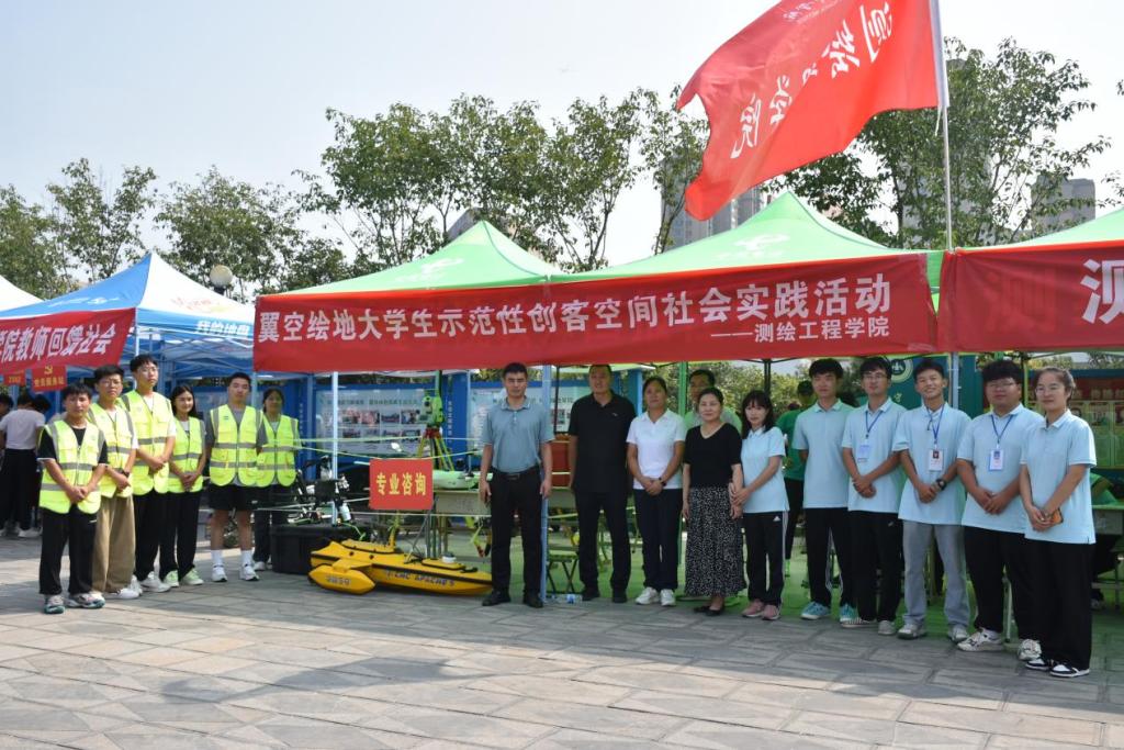 9月9日上午,翼空绘地创客空间在扬帆广场测绘工程学院迎新处开展社会实践活动,向到校报道的新生及家长朋友们介绍新型测绘仪器,引起大家的兴趣与关注。