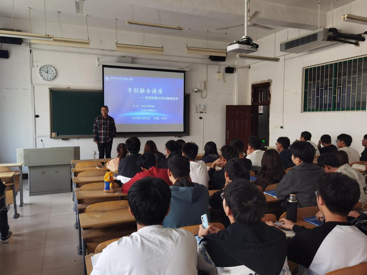10月9日上午,大学生创客空间“水润万物萌创工厂”在教学楼5303举办了专创融合讲座——双创技能与工匠精神培养专题讲座,本次邀请的专家是北京市农林科学院薛绪掌教授。水利工程学院骨干教师、大学生创客空间负责人张芳博士和2021级港口与航道专业学生,共计50人参加了讲座。