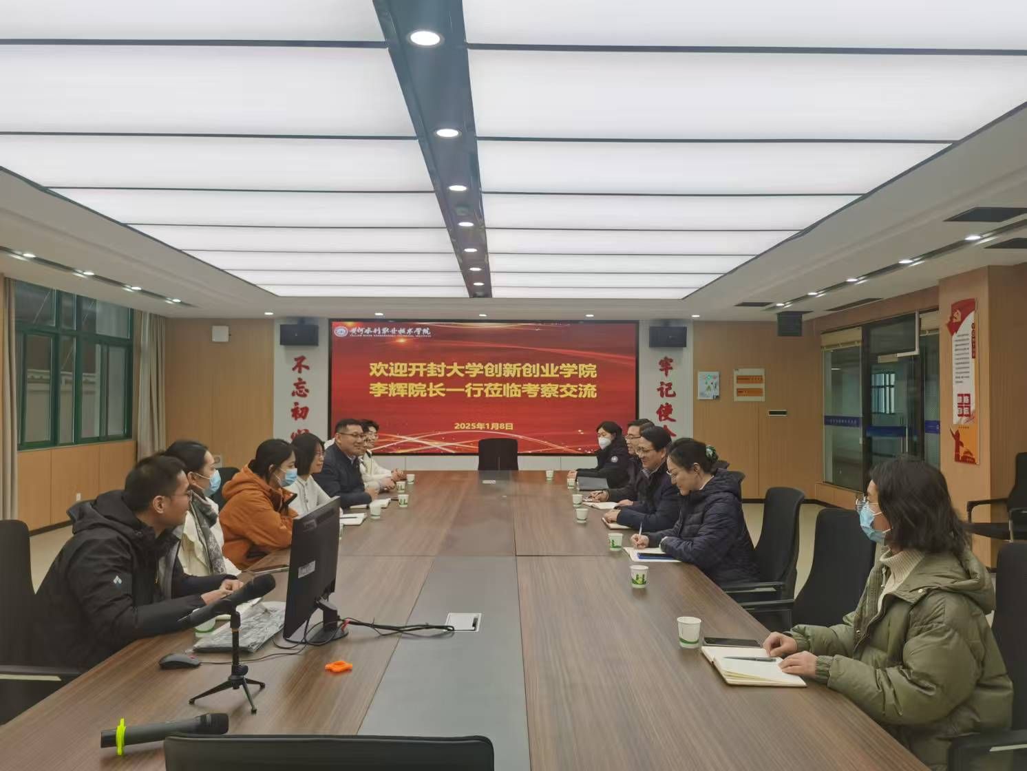 2025年1月8日上午,开封大学创新创业学院院长李辉一行7人来我院考察交流,创新创业学院院长薛冰、副院长余楠等部门成员陪同。