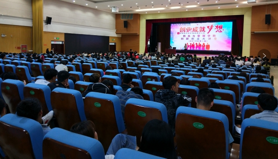 2018年4月16日下午,现代物流大学生创客空间特邀德邦快递开封区负责人凌勇凌总和河南人力资源部负责人随辰星随总来我校为商务管理学院学生开展择业、就业与创业方面的讲座。本次活动在大学生活动中心进行,学院党总支书记樊建科出席活动并致欢迎辞,学院各级辅导员、专业课教师和全体在校学生600余人以及开封大学近130名学生参加本次讲座。本次讲座主题为“高职生如何逆袭:择业、就业与创业”。