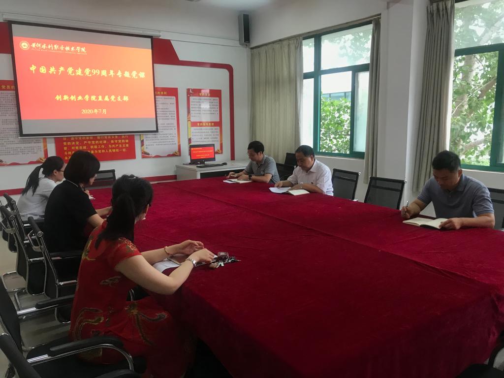 7月2日上午,创新创业学院直属党支部在三号实训楼3311党团活动室开展重温入党誓词活动,支部书记罗全胜讲述建党99周年“党课开讲啦”专题党课,支部全体成员参加。