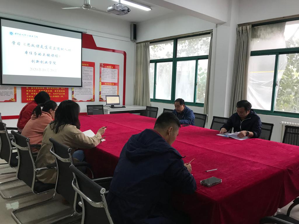 部门成员就两个文件内容进行讨论交流,表示会牢记为党育人初心,坚定为国育才立场,贯彻党的教育方针,推动思政课与创新创业教育相结合,帮助学生“扣好人生第一粒扣子”,把立德树人的根本任务真正落到实处,为圆满完成我校“双高校”建设任务贡献力量。