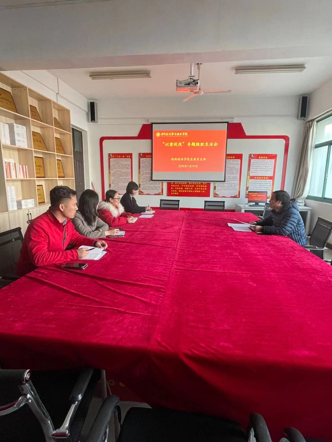 1月19日下午,创新创业学院直属党支部在SY3311党员活动室召开以案促改专题组织生活会,深入开展批评和自我批评,会议由支部副书记范龙主持。