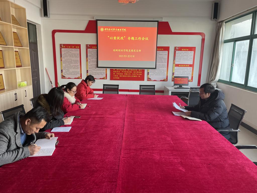 1月12日下午,创新创业学院直属党支部在三号实训楼3311党员活动室召开以案促改专题工作会议,会议由支部副书记范龙主持。