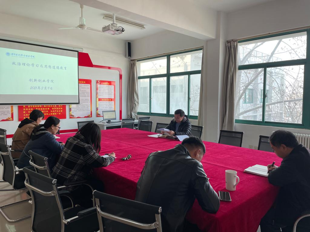 3月9日下午,创新创业学院在三号实训楼3311党员活动室召开会议,学习习近平总书记系列讲话精神,部门全体成员参加。