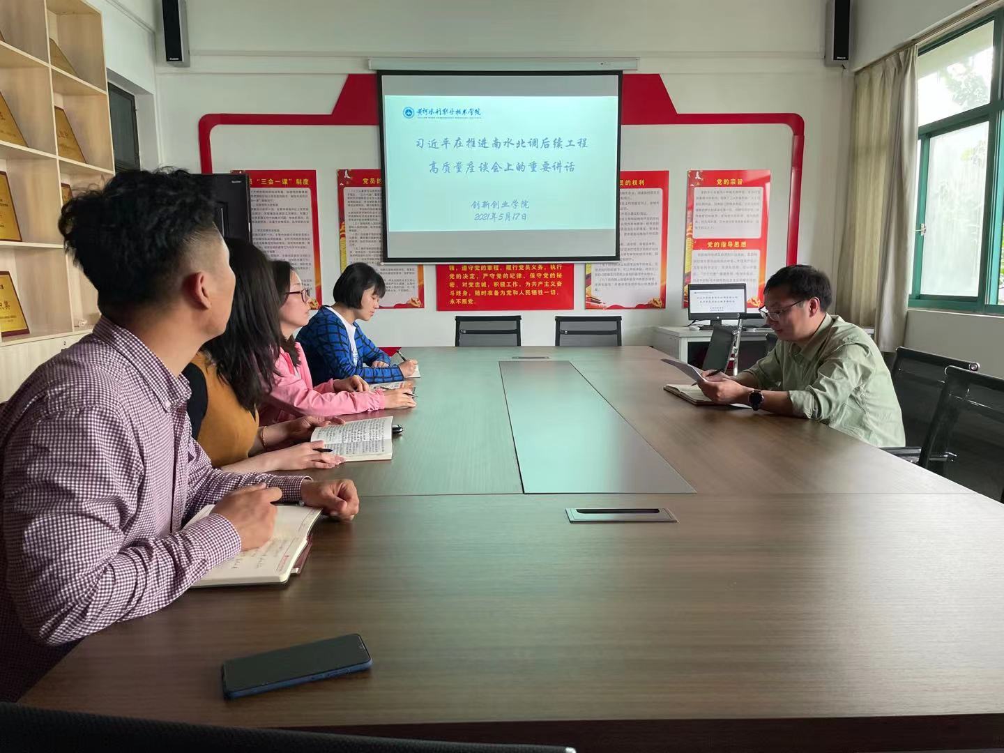 5月17日下午,创新创业学院在SY3311党员活动室召开会议,组织学习习近平总书记在推进南水北调后续工程高质量发展座谈会上的重要讲话精神,会议由副院长范龙主持,部门全体成员参加。
