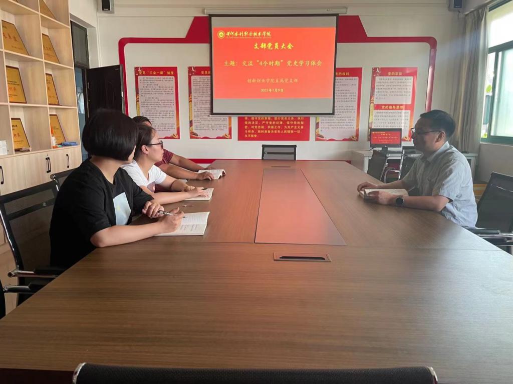 7月9日下午,创新创业学院直属党支部在SY3311召开支部党员大会,交流“4个时期”党史学习体会,会议由支部副书记范龙主持。