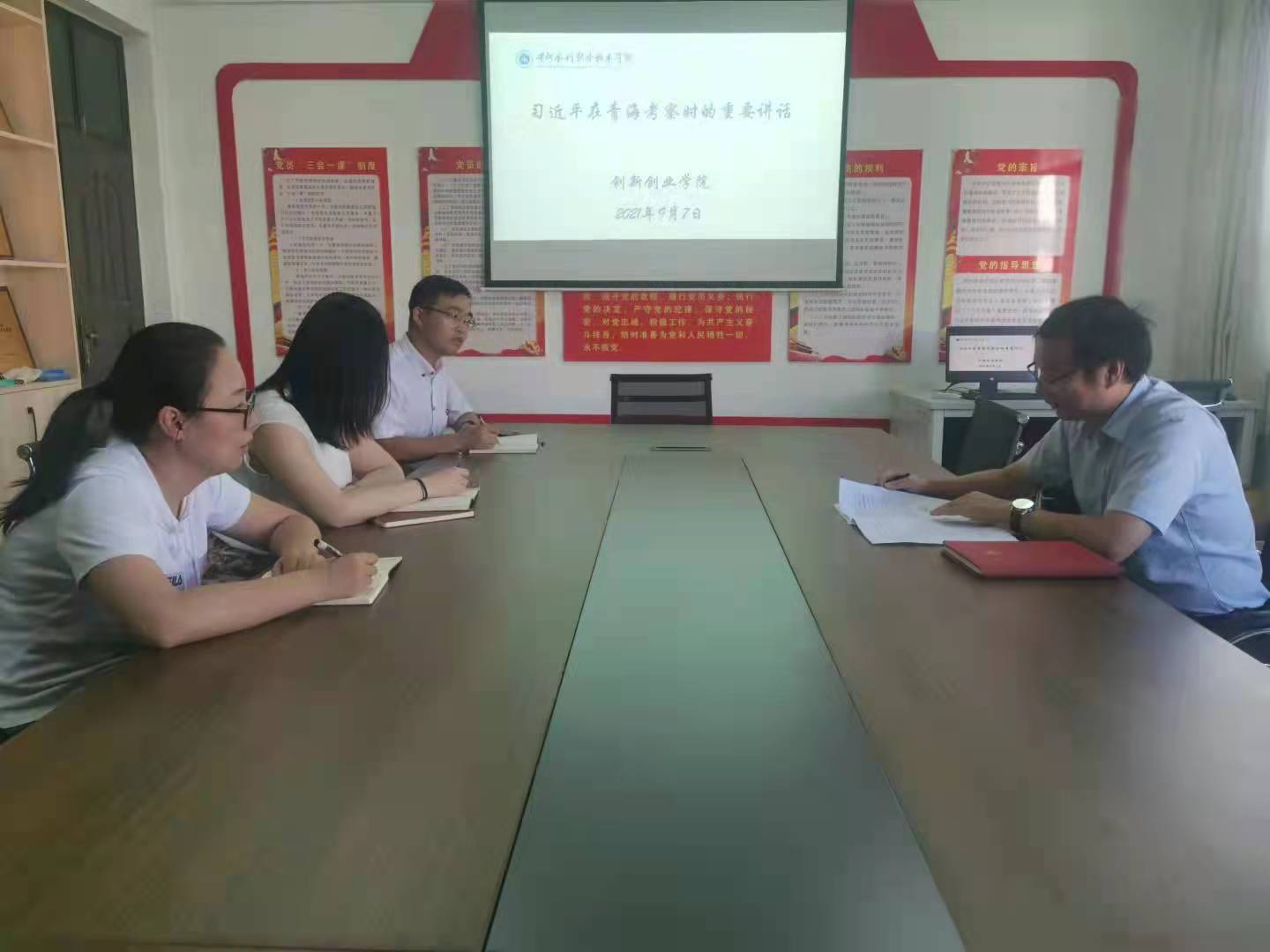 9月7日下午,创新创业学院在SY3311党员活动室召开会议,组织学习习近平总书记在青海省考察时的重要讲话和习近平总书记在中央党校(国家行政学院)中青年干部培训班开班式上的重要讲话精神。会议由副院长范龙主持,支部全体成员参加。