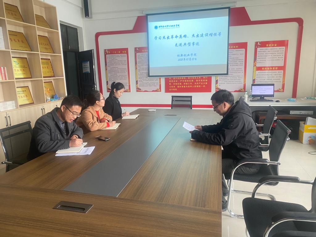 10月12日下午,创新创业学院直属党支部在SY3311党员活动室组织党史专题学习,集中学习杰出革命英雄、杰出建设楷模、杰出时代先锋、七一勋章获得者、河南教育系统先进典型等典型事迹。学习活动由支部副书记范龙主持。