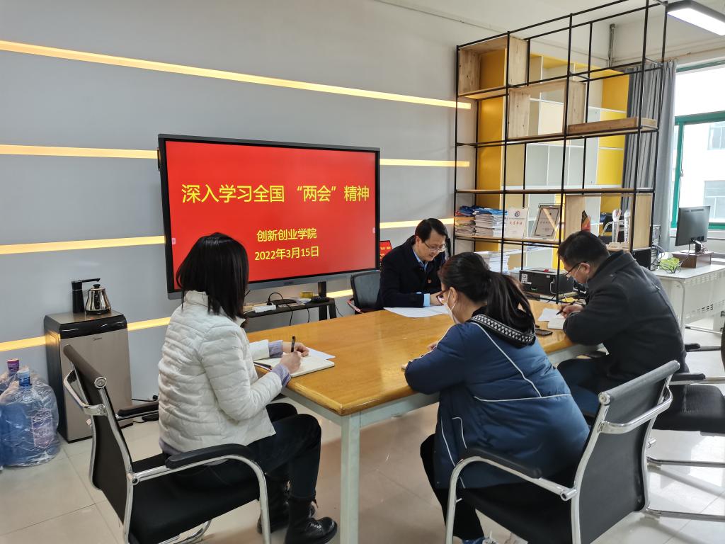 3月15日下午,创新创业学院在3号实训馆SY3410组织全国“两会”精神专题学习,创新创业学院全体人员参加学习活动。