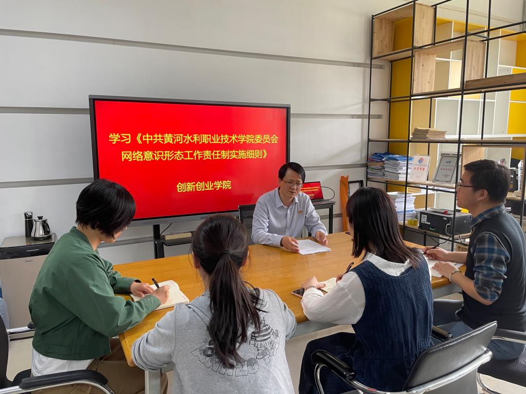 4月26日下午,创新创业学院在SY3410办公室召开会议,开展意识形态责任制专题学习,会议由院长兼直属党支部书记薛冰主持,部门全体成员参加。