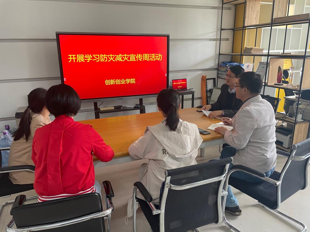 为提升学院教师灾害风险防范意识和能力,按照我校《关于开展防灾减灾宣传周活动的通知》相关要求,5月10日下午,创新创业学院开展防灾减灾宣传周宣传教育活动,活动由院长兼直属党支部书记薛冰主持,部门全体成员参加。