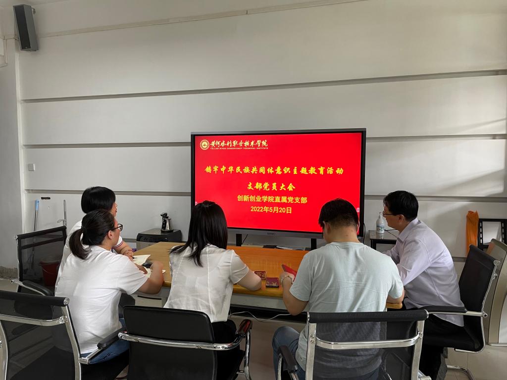 5月20日下午,创新创业学院直属党支部在SY3410召开支部党员大会,开展铸牢中华民族共同体意识主题教育活动,活动由院长兼直属党支部书记薛冰主持,支部全体成员参加。