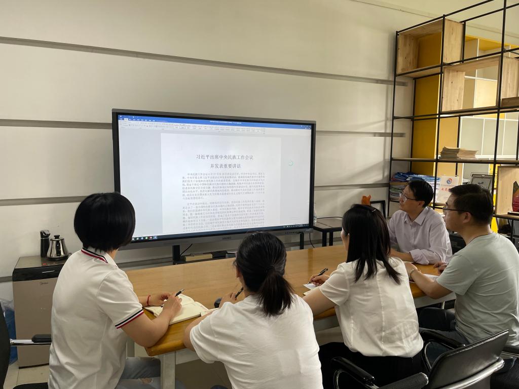 最后,参会人员进行了交流讨论,大家认为要自觉把中华民族共同体意识教育纳入日常学习教育全过程,自觉学习“四史”,发扬党领导人民在各个历史时期奋斗中形成的伟大建党精神等精神,提高政治判断力、政治领悟力、政治执行力。