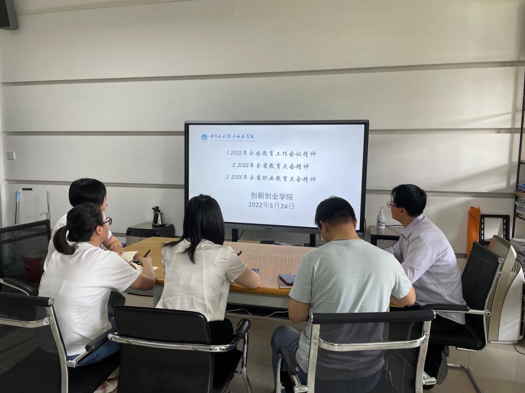 5月24日下午,创新创业学院在SY3410召开会议,组织学习教育工作会议相关精神,会议由院长薛冰主持,部门全体成员参加。