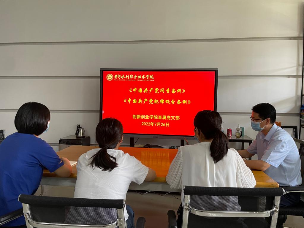 7月26日下午,创新创业学院直属党支部在实训楼3410开展廉政教育活动,支部全体成员参加。会议由支部书记薛冰主持。