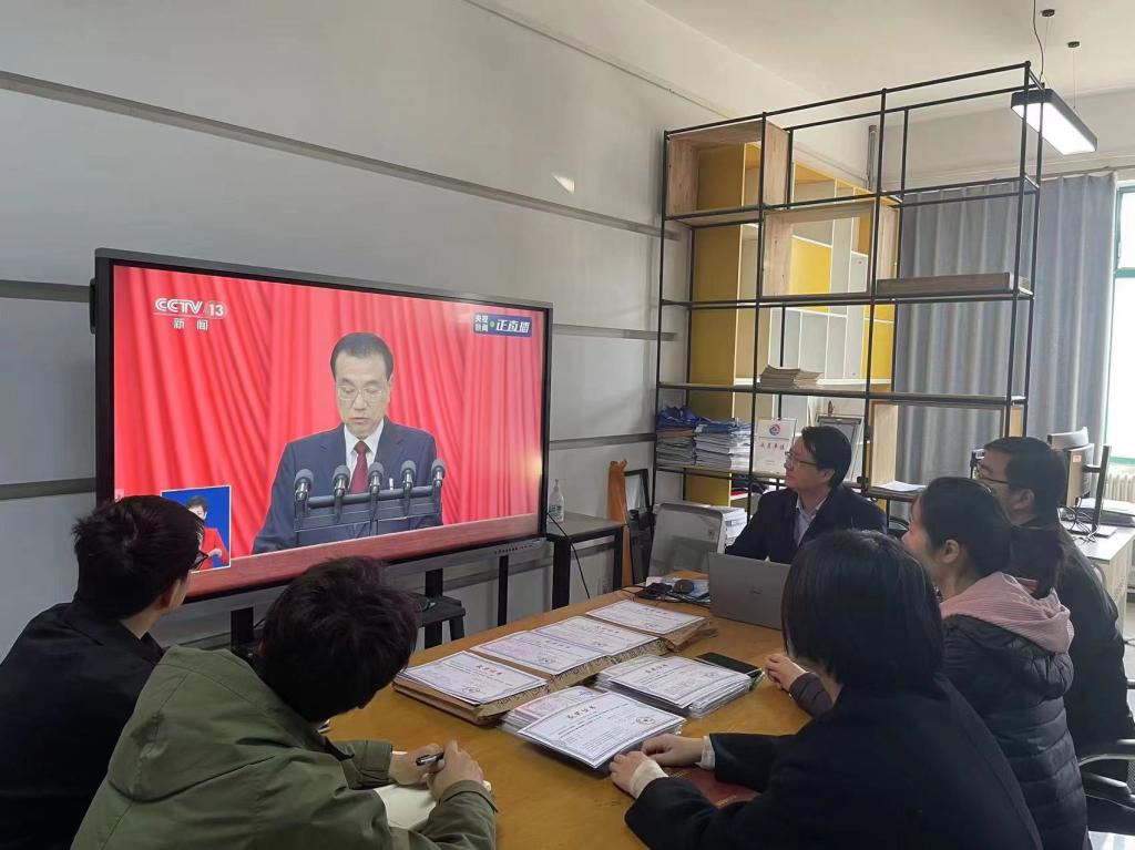3月5日,第十四届全国人民代表大会第一次会议在北京人民大会堂举行开幕会,创新创业学院全体成员在SY3410办公室观看直播。
