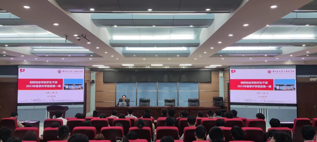 3月14日下午,创新创业学院直属党支部书记薛冰在三号实训楼水利报告厅讲授“思政第一课”,支部全体成员及校创新创业部学生参加。
