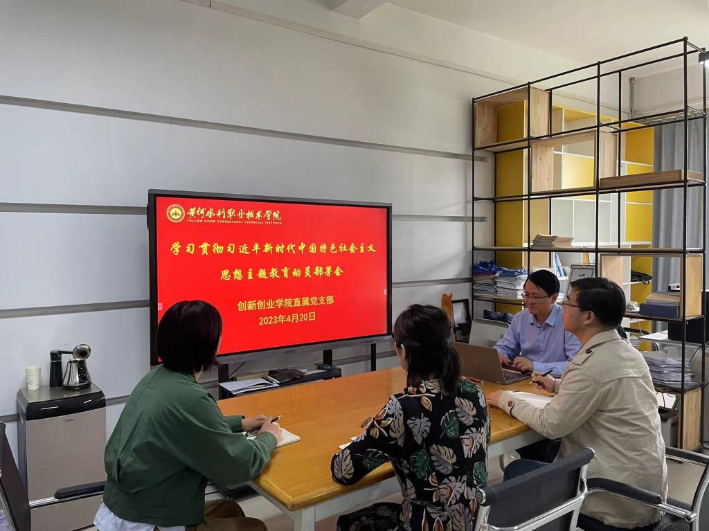 4月20日上午,创新创业学院直属党支部在SY3410召开贯彻习近平新时代中国特色社会主义思想主题教育动员部署会,会议由直属党支部书记薛冰主持,支部全体成员参加。