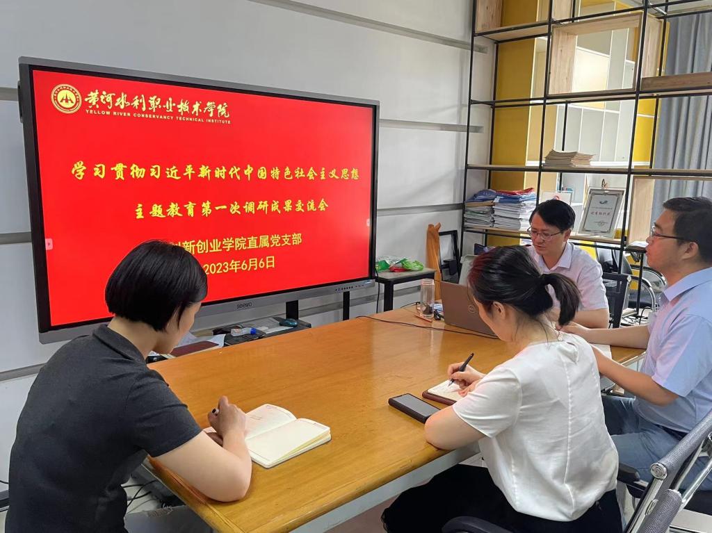 6月6日下午,创新创业学院直属党支部在SY3410召开学习贯彻习近平新时代中国特色社会主义思想主题教育第一次调研成果交流会,会议由支部书记薛冰主持,支部全体成员参加。
