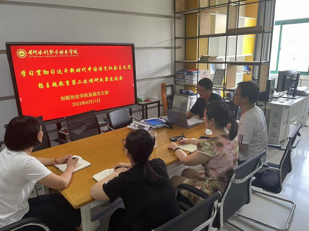 8月21日下午,创新创业学院直属党支部在SY3410召开学习贯彻习近平新时代中国特色社会主义思想主题教育第二次调研成果交流会,会议由支部书记薛冰主持,支部全体成员参加。