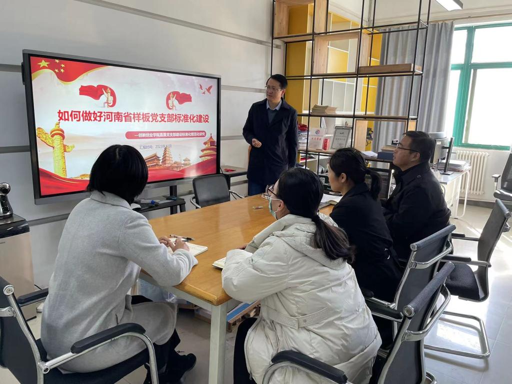 11月23日上午,创新创业学院直属党支部书记薛冰在三号实训楼3410办公室就《如何做好河南省样板党支部标准化建设—创新创业学院直属党支部建设标准化规范化研究》讲授专题党课,支部全体成员参加。