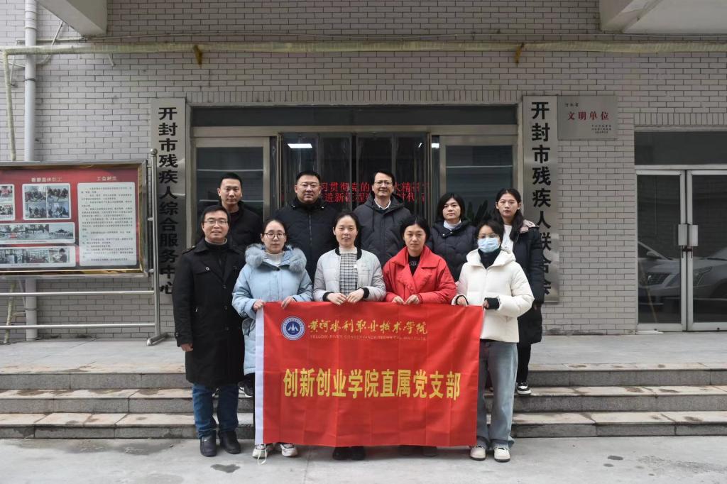 12月18日下午,创新创业学院直属党支部前往开封市残疾人联合会开展“温暖童心,与爱同行”爱心礼包捐赠主题党日活动,创新创业学院直属党支部书记薛冰、支部全体成员,开封市残疾人联合会党组成员、副理事长葛婴,康复教育中心主任李娅婕参加活动。