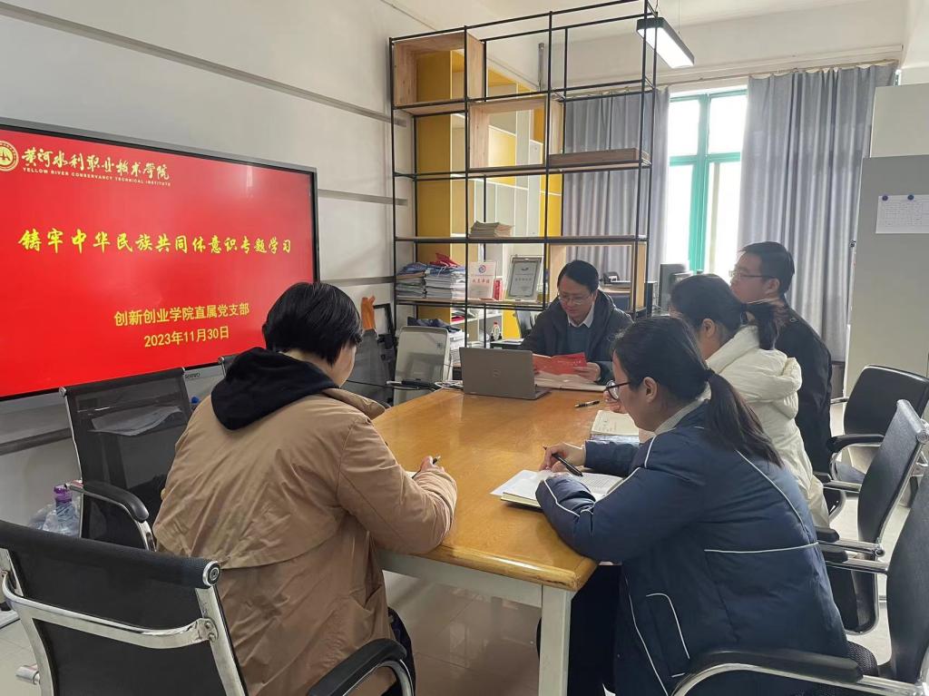 11月30日下午,创新创业学院直属党支部在三号实训楼3410办公室开展铸牢中华民族共同体意识专题学习,学习由直属党支部书记薛冰主持,支部全体成员参加。