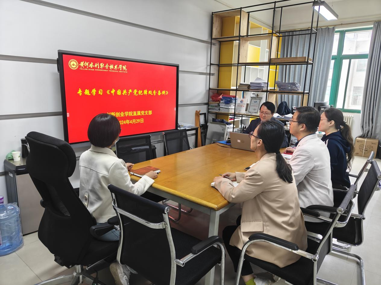 4月29日上午,创新创业学院直属党支部在SY3410办公室开展《中国共产党纪律处分条例》专题学习,会议由直属党支部书记薛冰主持,支部全体成员参加,会议采取“会上领学+研讨交流”相结合的方式。