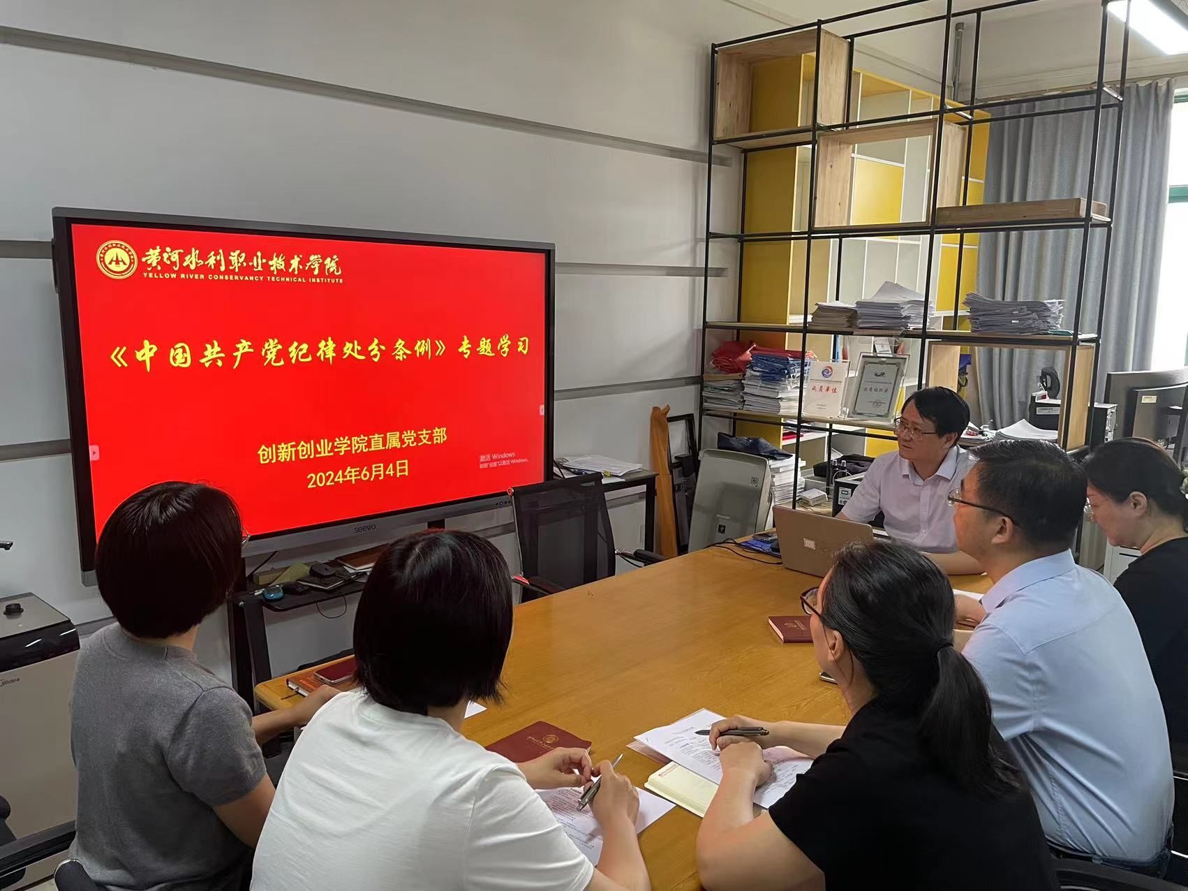 6月4日下午,创新创业学院直属党支部在SY3410开展《中国共产党纪律处分条例》专题学习,学习由直属党支部书记薛冰主持,支部全体成员参加。