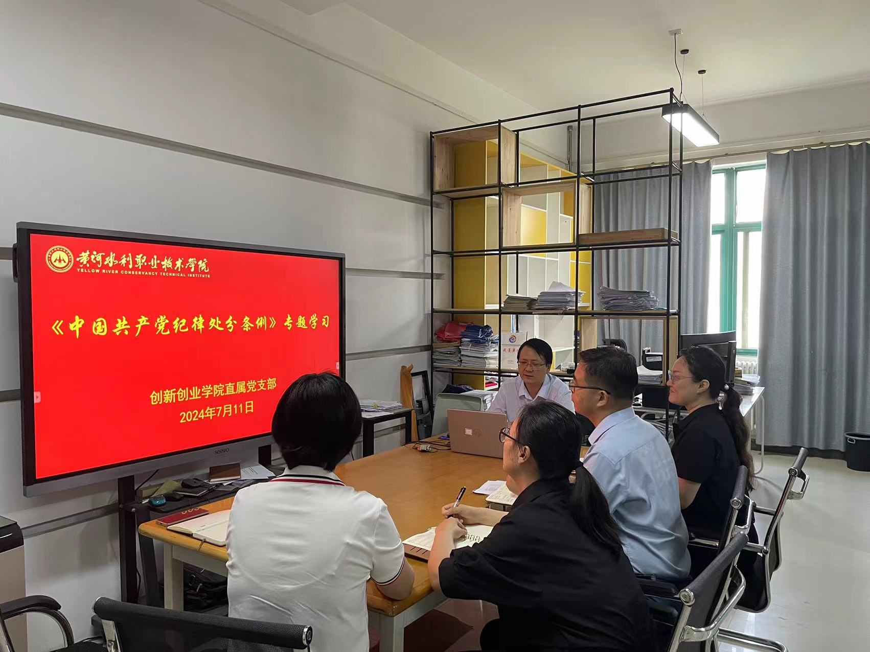 7月11日,创新创业学院直属党支部在SY3410开展党纪学习教育专题研讨活动,活动由直属党支部书记薛冰主持,支部全体成员参加。