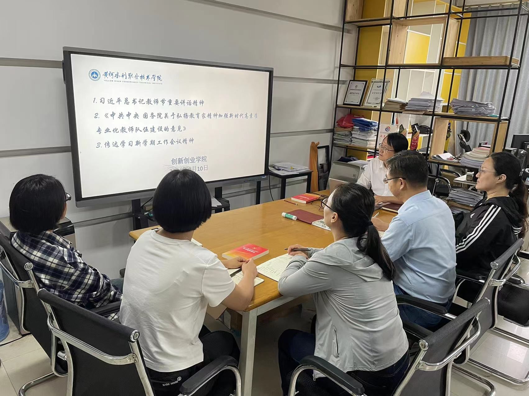 9月10日下午,创新创业学院在SY3410召开政治理论专题学习会,会议由创新创业学院院长薛冰主持,部门全体成员参加。